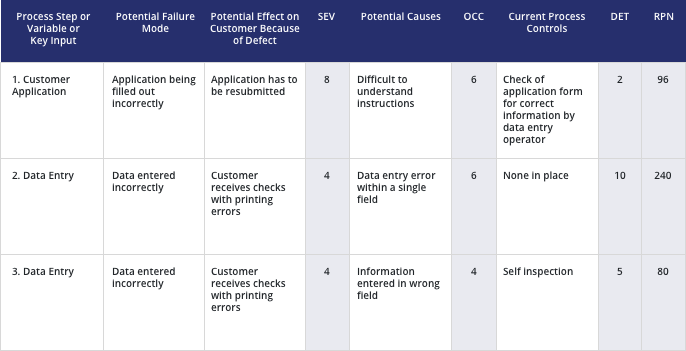 A combination of the three scores produces a Risk Priority Number (RPN). The RPN is then used to prioritize which problems should be addressed first.